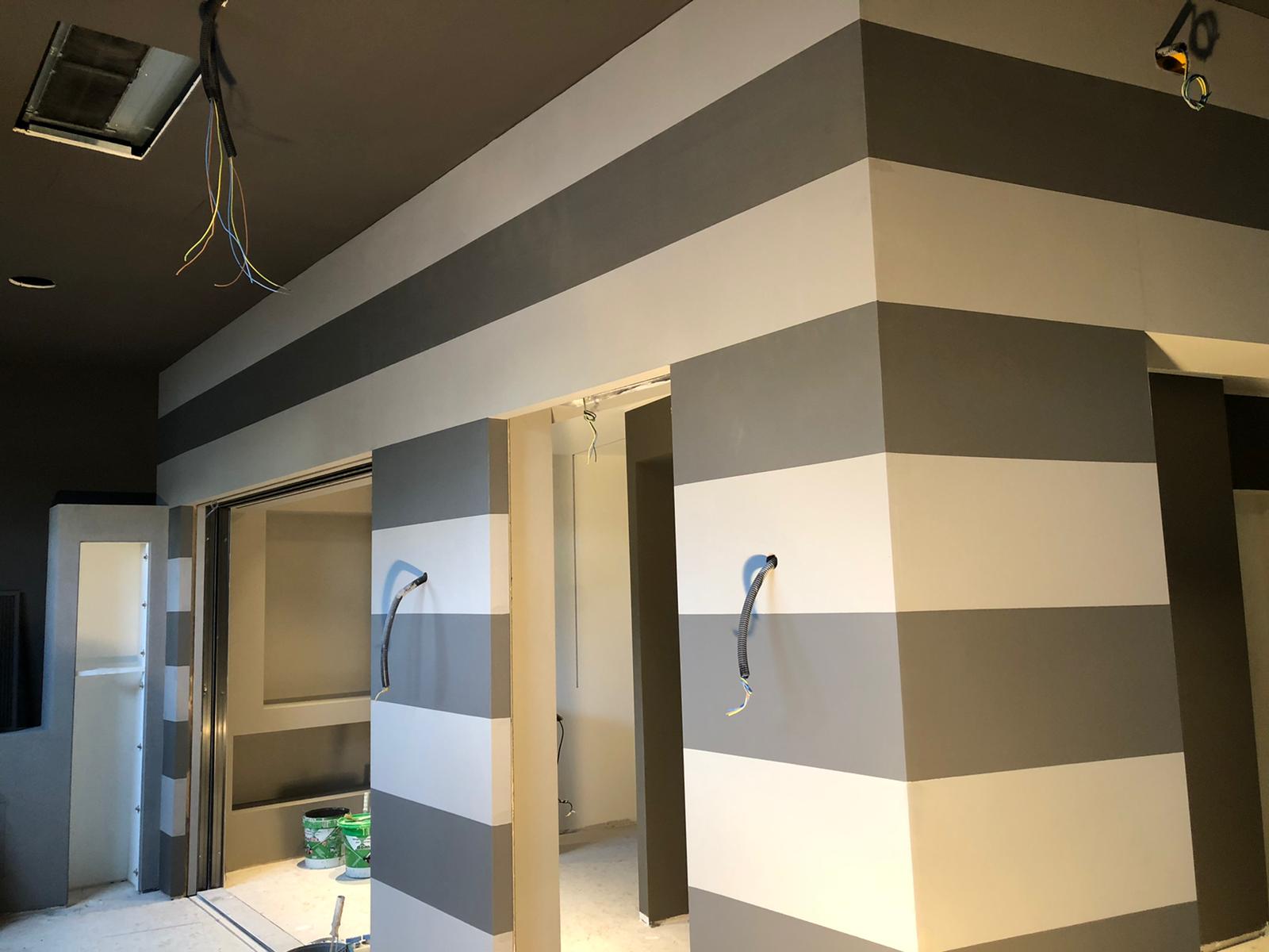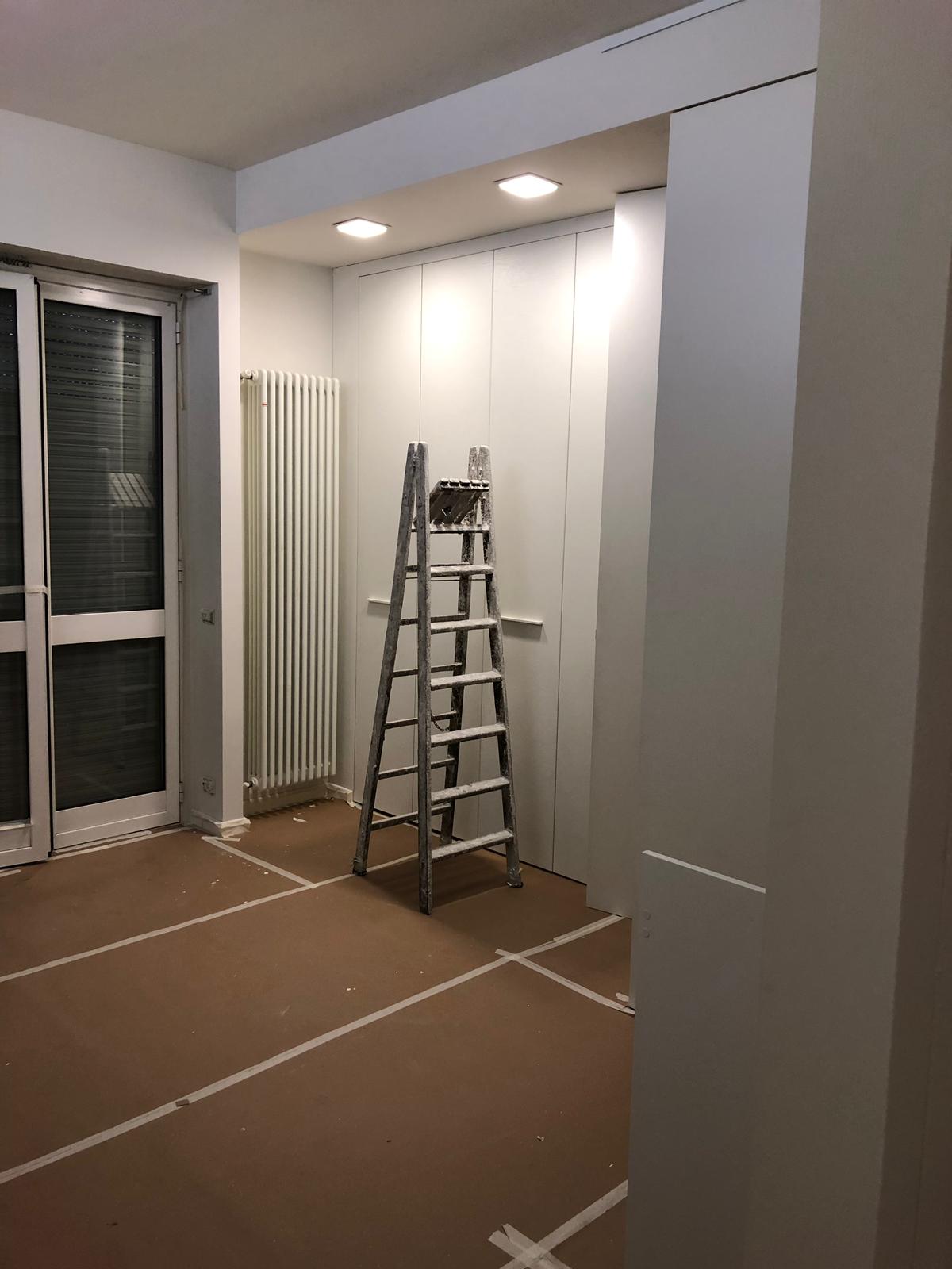 La preparazione rigorosa dell’ ambiente di lavoro viene prima di tutto. Dopo aver spostato opportunamente tutti gli elementi mobili, rifasciamo alla perfezione ogni cosa. Dedichiamo particolare attenzione ai pavimenti: realizziamo coperture allo stato dell’arte che riducono a zero il rischio di avere delle macchie indesiderate. Grazie a questo lavoro preliminare le lavorazioni successive saranno eseguite con la massima velocità e pulizia.
